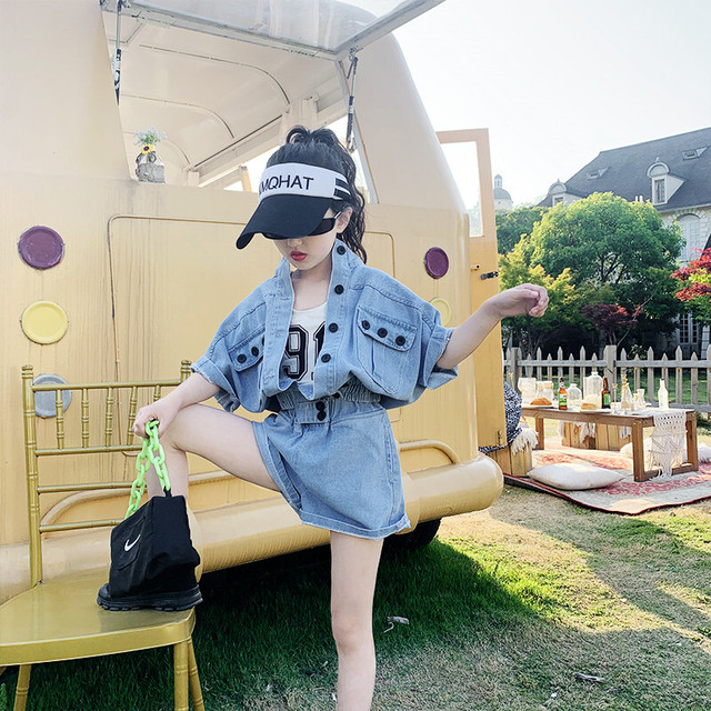 ユニセックス デニム半袖ショーパンセットアップ Rr381 Hh5656